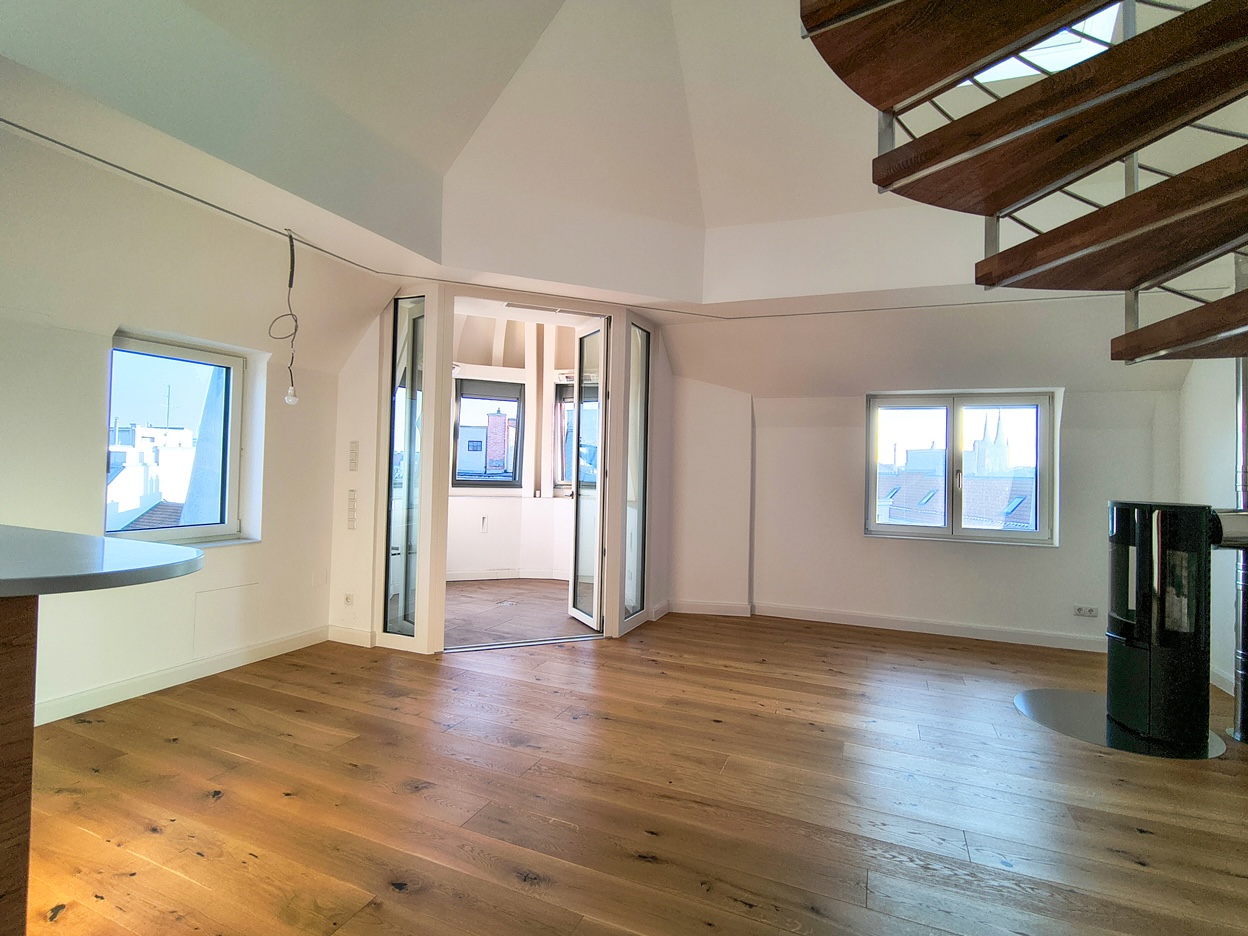 1080 Wien – Nähe Theater in der Josefstadt -101m2 – 2 Zimmer – Galerie – Luxus-Solitär mit Turm-Loggia und Loft-Feeling – EUR 998.000,– >Details